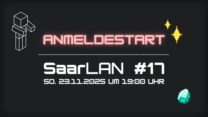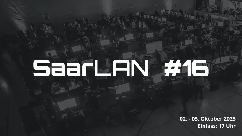Hallo liebe SaarLANer, am Sonntag, den 23.11.2025 um 19:00 Uhr MEZ startet der Ticketverkauf zur SaarLAN #17 über das Wochenende vom 10.-12.04.2026. PHASE 0: Sonntag, 23.11.2025, 19:00 Uhr MEZ:...