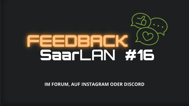 Haaaaaalloooooo SaarLANer!💚 Helft uns, noch geiler zu werden, indem ihr euer konstruktives Feedback im Forum droppt! 🤝Egal ob's um Netzwerk, Server, Catering oder andere Themen zur SaarLAN geht –...